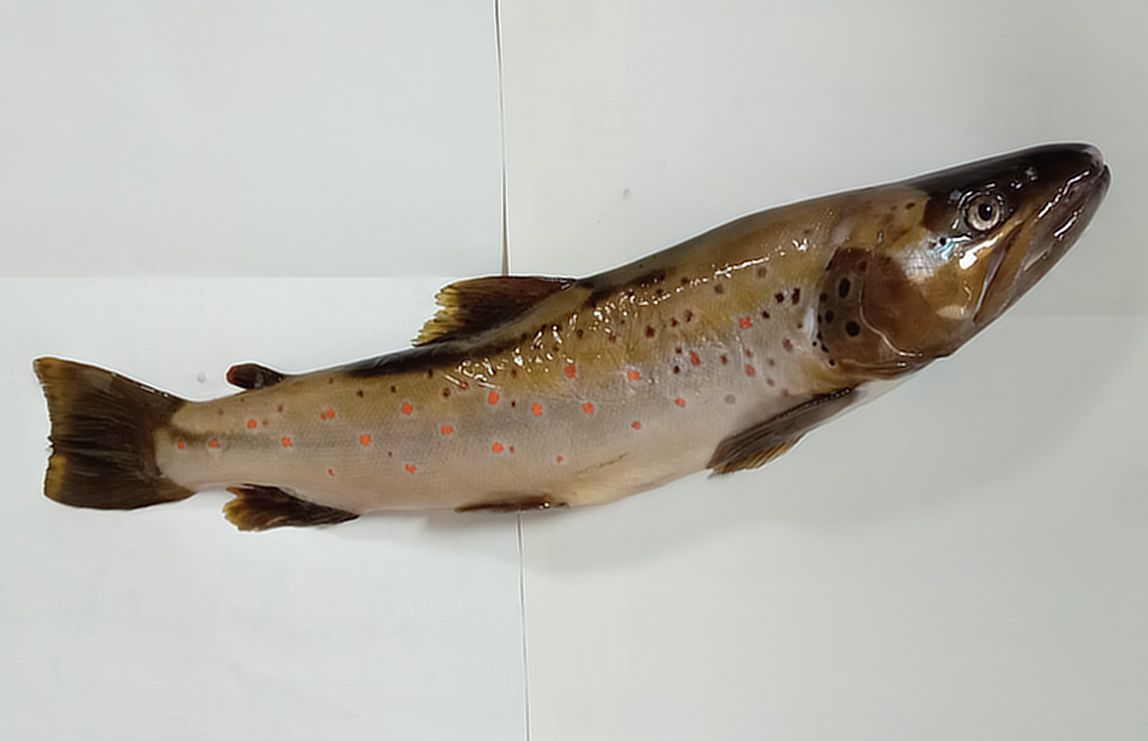 今日、漁協がヤマメ成魚を放流した。早速、釣り人が3人ほど陣取っていたので、別の場所へ入った。いつもは警戒していて、夕まずめにならないと喰って来ないが、今日は早くに喰ってきた。1本目は31cmのブラニジ。写真を見ればわかるが、ブラウンとニジマスの雑種。2本目は、瀬尻へ猛ダッシュされ、ライン切れでバラス。更に、続いて明確なアタリで3本目がヒット。強烈な引きで、またもやラインを切られるか・・・と思うほど。3本目は50cmのブラウン。立て続けに3本のブラウン。梓川はブラウンの川になってしまった。 |