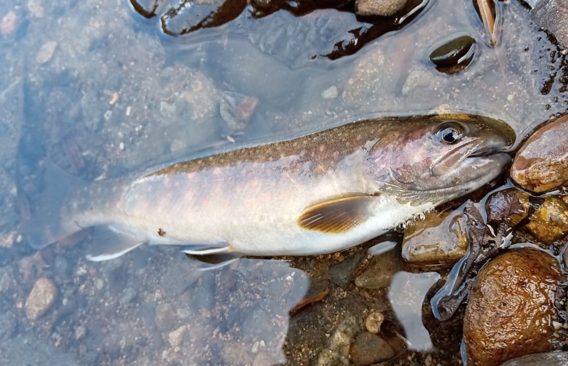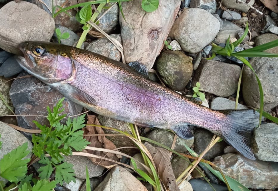 美味しいニジマスを狙って29日の場所へ。まだ残っているか・・・?若干喰い渋り感はあるが、順調にあがる。ニジマスを6尾キープする。